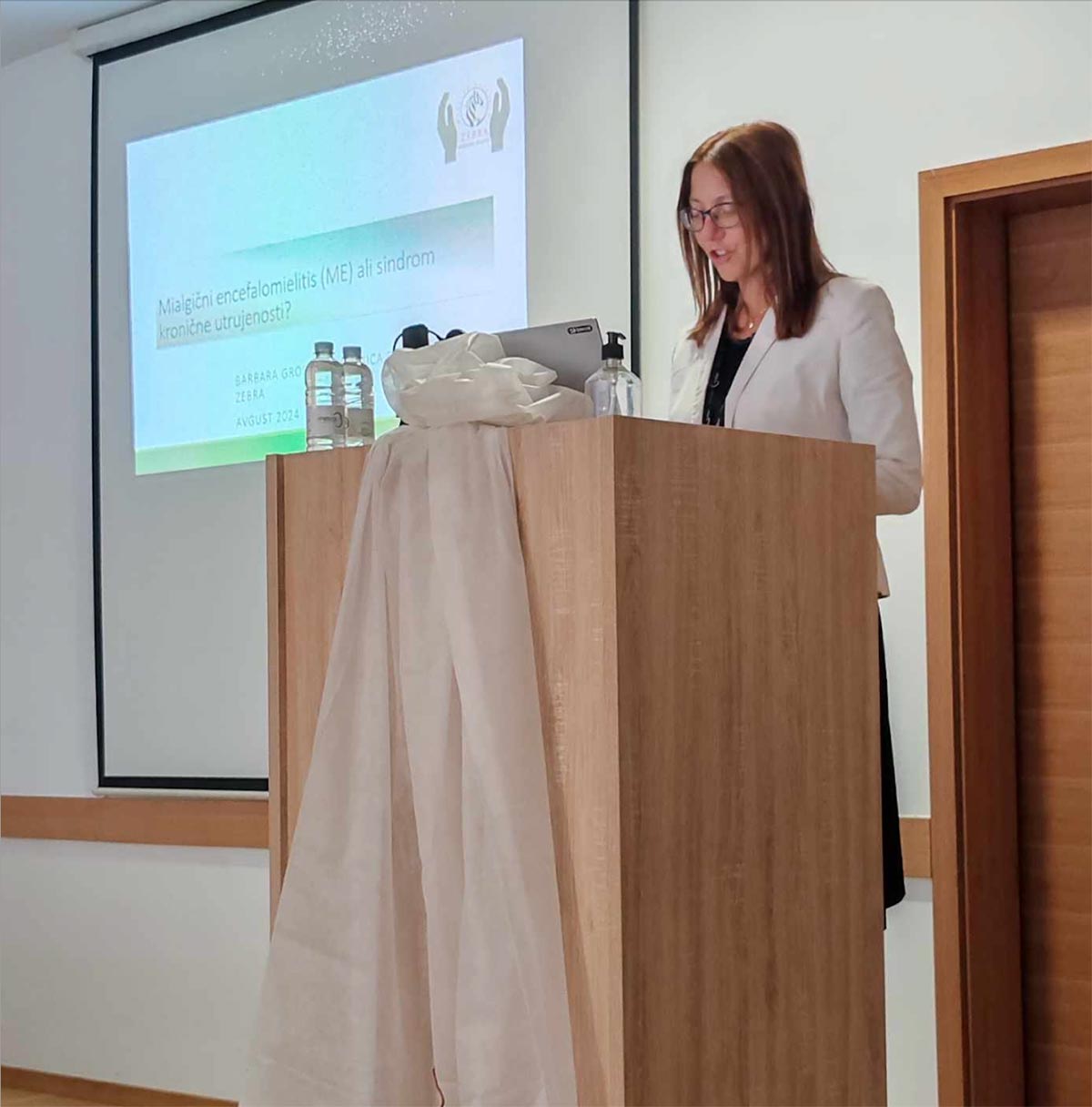 Društvo bolnikov Zebra smo organizirali in 14. septembra 2024 izpeljali 1. mednarodno konferenco za ME/SKU v Sloveniji. Gostili smo hrvaško in srbsko društvo za mialgični encefalomielitis ter Društvo oseb z invalidnostjo Beograd ter dva zdravnika, prof. dr. Branislava Milovanovića in dr. Timona Zupanca.