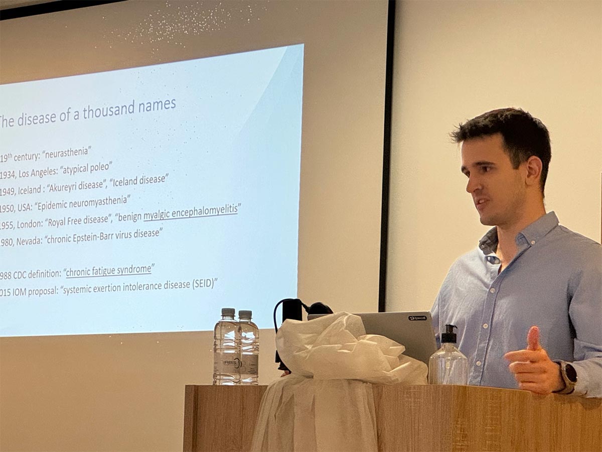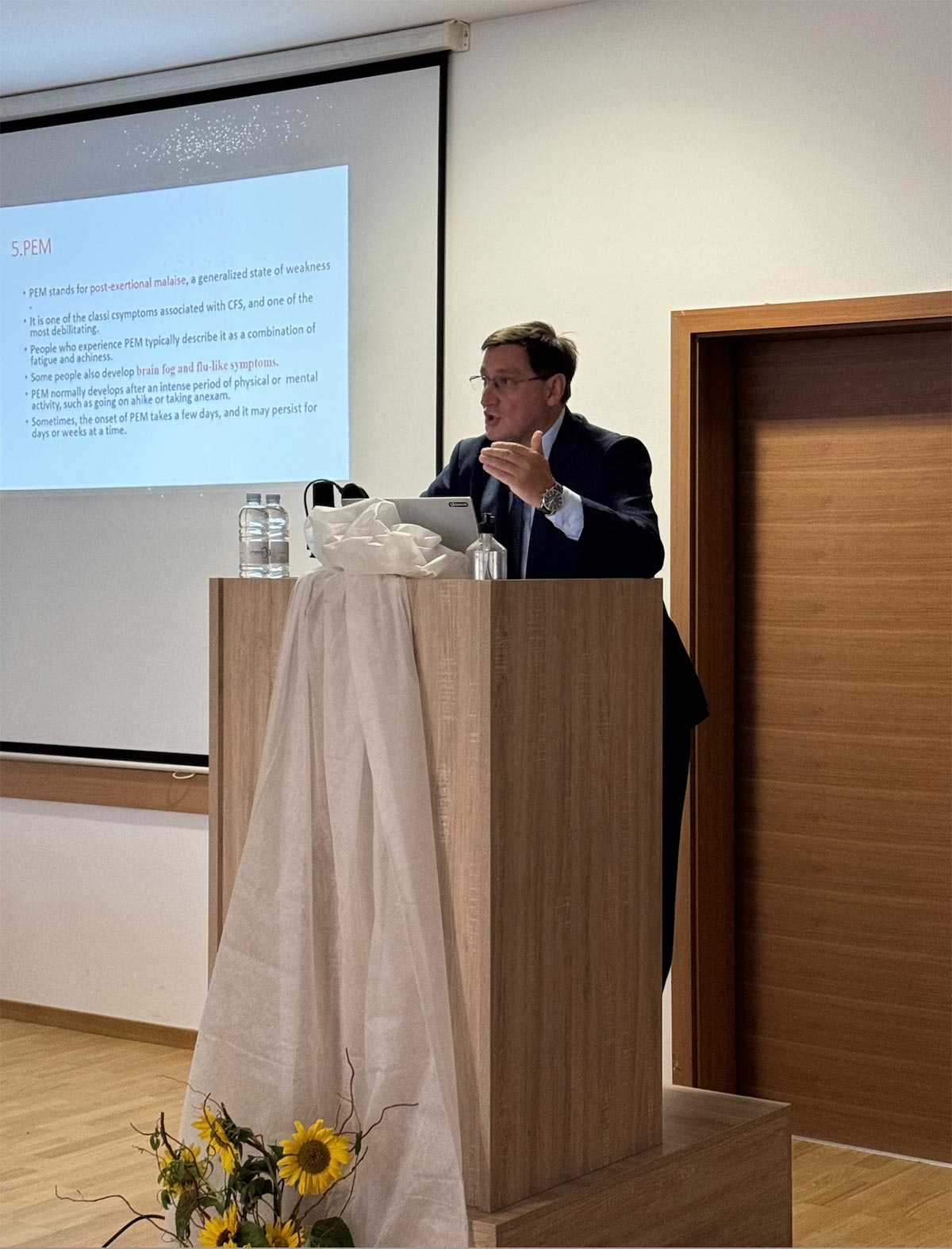 Kako potekajo multiple sinhrone preiskave, diagnostika in terapije za ME/SKU je predstavil svoje delo prof. dr. Branislav Milovanović, dr. med. spec. interne medicine – kardiolog z Inštitut za kardiovaskularne bolezni Dedinje v Srbiji, ki se s to problematiko intezivno ukvarja že vrsto let in njegov doktorant, slovenski zdravnik dr. Timon Zupanc.
